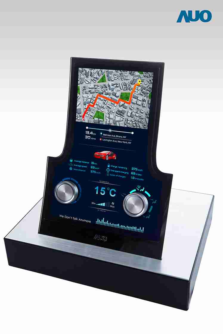 12.3 寸 Full HD LTPS 显示屏同样具备 1000 nits 高亮度,,搭载内嵌式触控技术,,,,整合驱动与触控 IC 于显示屏制程,,,使显示屏厚度降低,,,,为中控台创造更多机构设计空间。。。。应用于抬头显示器的 3寸 LTPS 显示屏具有高穿透率、、、1200:1 高对比度度,,,以及 297 PPI 高画素密度。。。液晶最高可耐受到 110C 的高温 (TNI) 而不液化,,,,在阳光高温下维持优异稳定的显示效果。。。